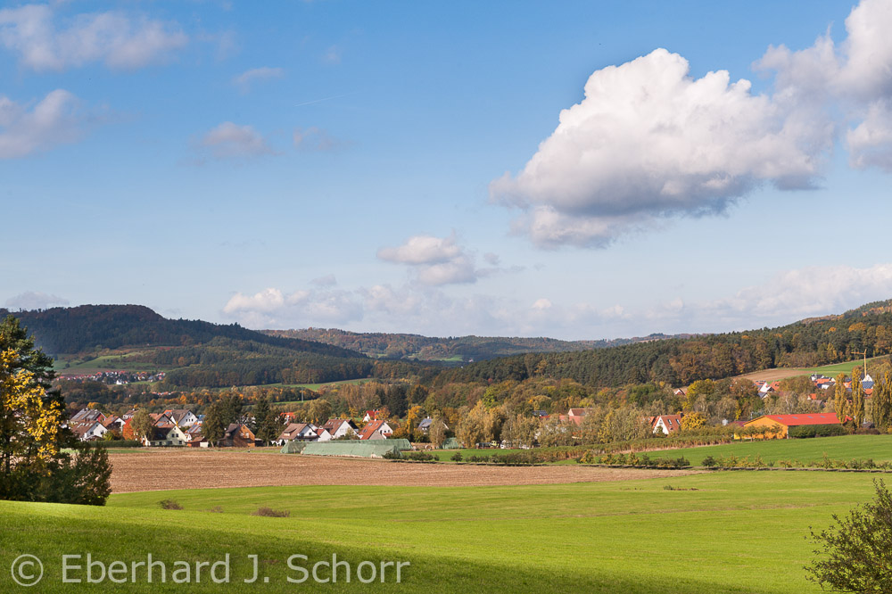 - Blick auf den Geflügelhof Schubert bei Igensdorf in Franken