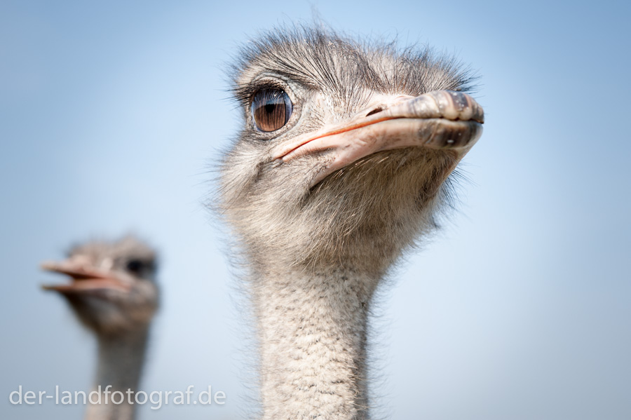 Für das Magazin »Aufs Land« vom Berliner Verlag fotografiere ich seit 2013 regelmäßig vor allem Tiergeschichten. Im September 2014 habe ich zusammen mit der Redakteurin Stéphanie Grix den Hof von Enrico und Nicole Dams besucht. Die beiden unterhalten seit 2011 den Hof, ein kleines Restaurant und einen Hofladen. Das Besondere ist, hier leben keine Rinder oder Schweine, sondern sehr neugierige und imposant große Tiere – Strauße.
