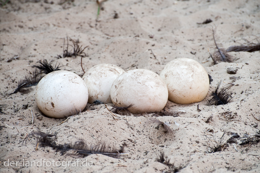 - Beim Nestbau betreibt der Strauß wenig Aufwand. Der Hahn setzt sich auf sandigen Boden und drückt eine Kuhle in die Erde.