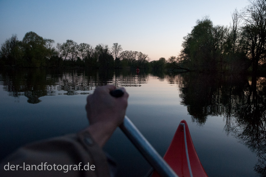 Als wir dann in der wundervollen Abenddämmerung weiter flussabwärts paddeln, haben wir sechs Biber gesehen, und ich konnte genügend gute Bilder machen.